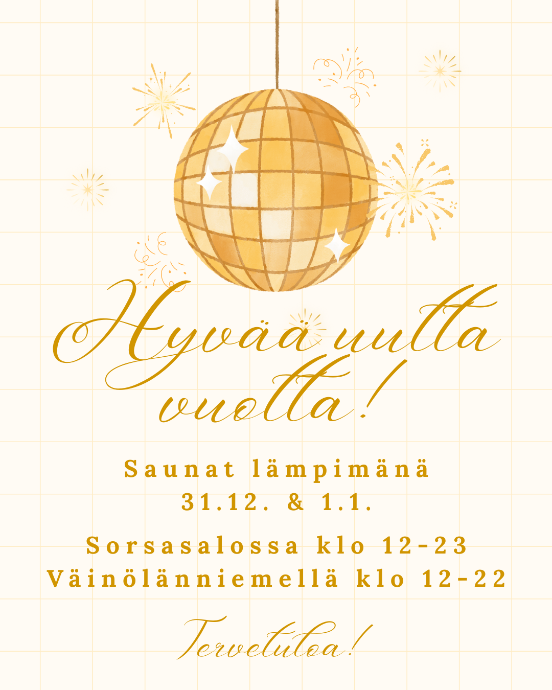 Saunat ovat avoinna myös uuden vuoden pyhinä - tervetuloa!